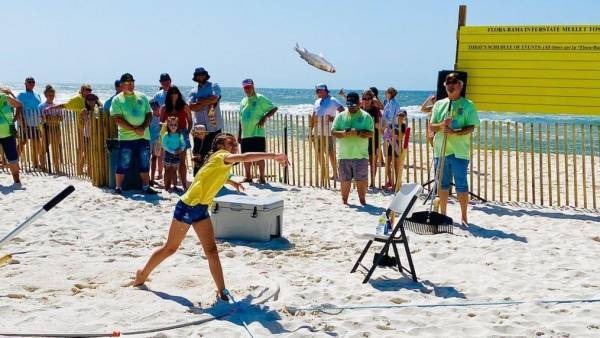 Get ready for one of the wildest, most legendary beach parties on the Gulf Coast — the Interstate Mullet Toss at the iconic Flora-Bama!